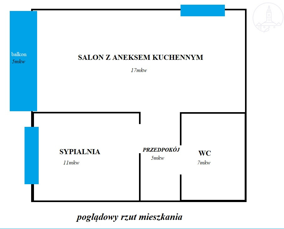 – 2 pokoje z możliwością wydzielenia oddzielnej kuchni