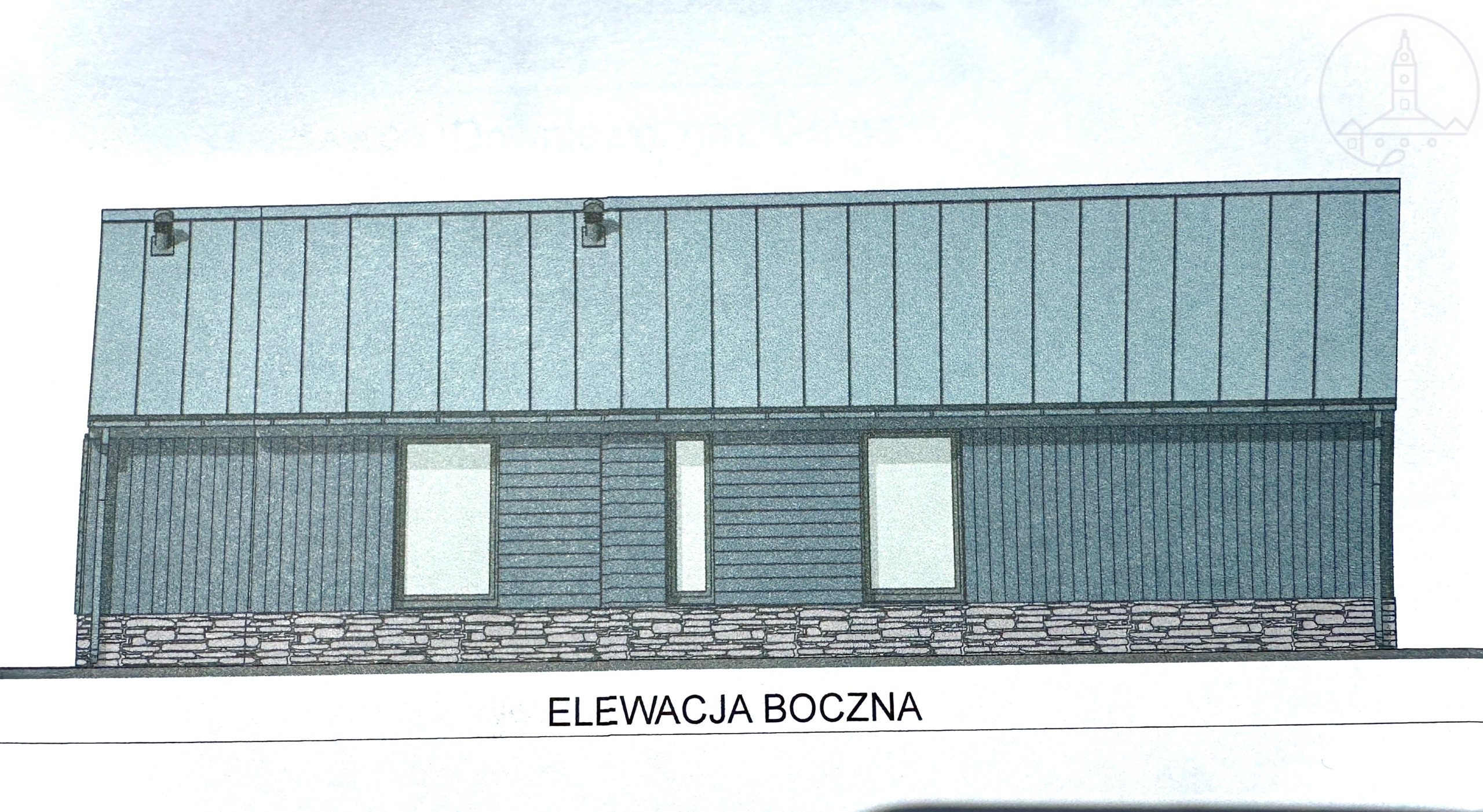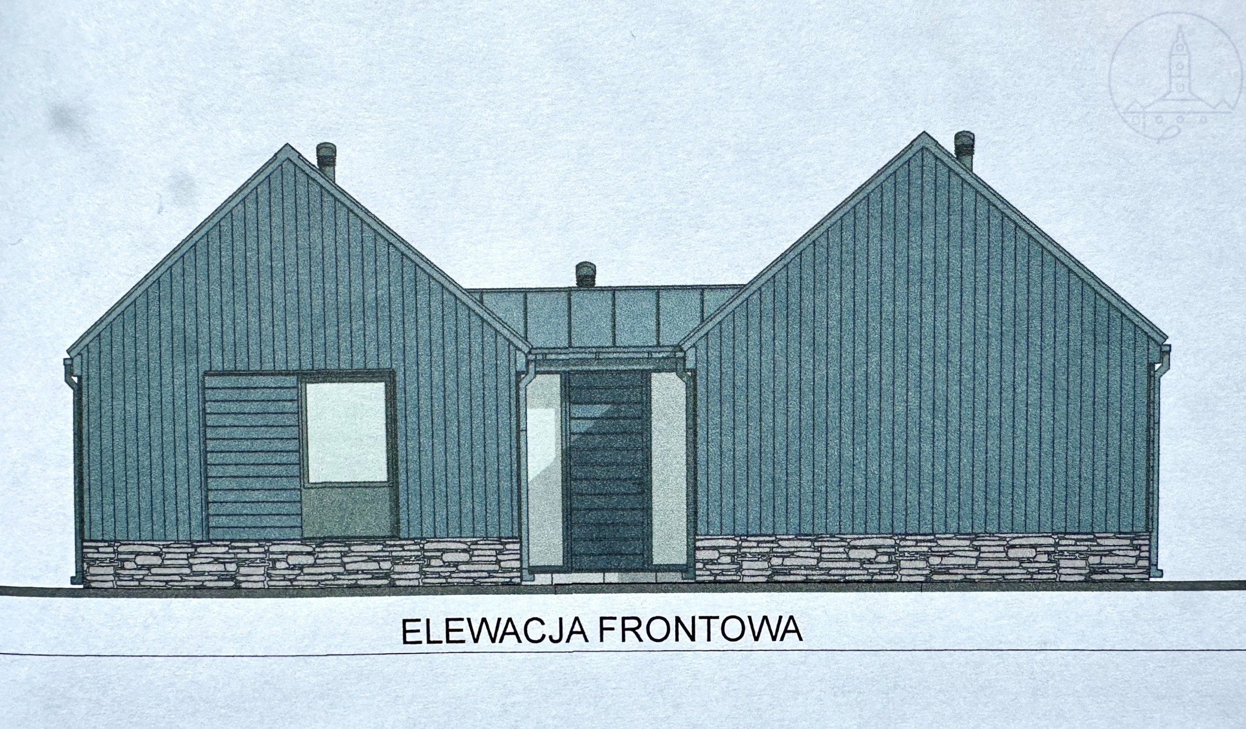 - budynek z projektem domu parterowego