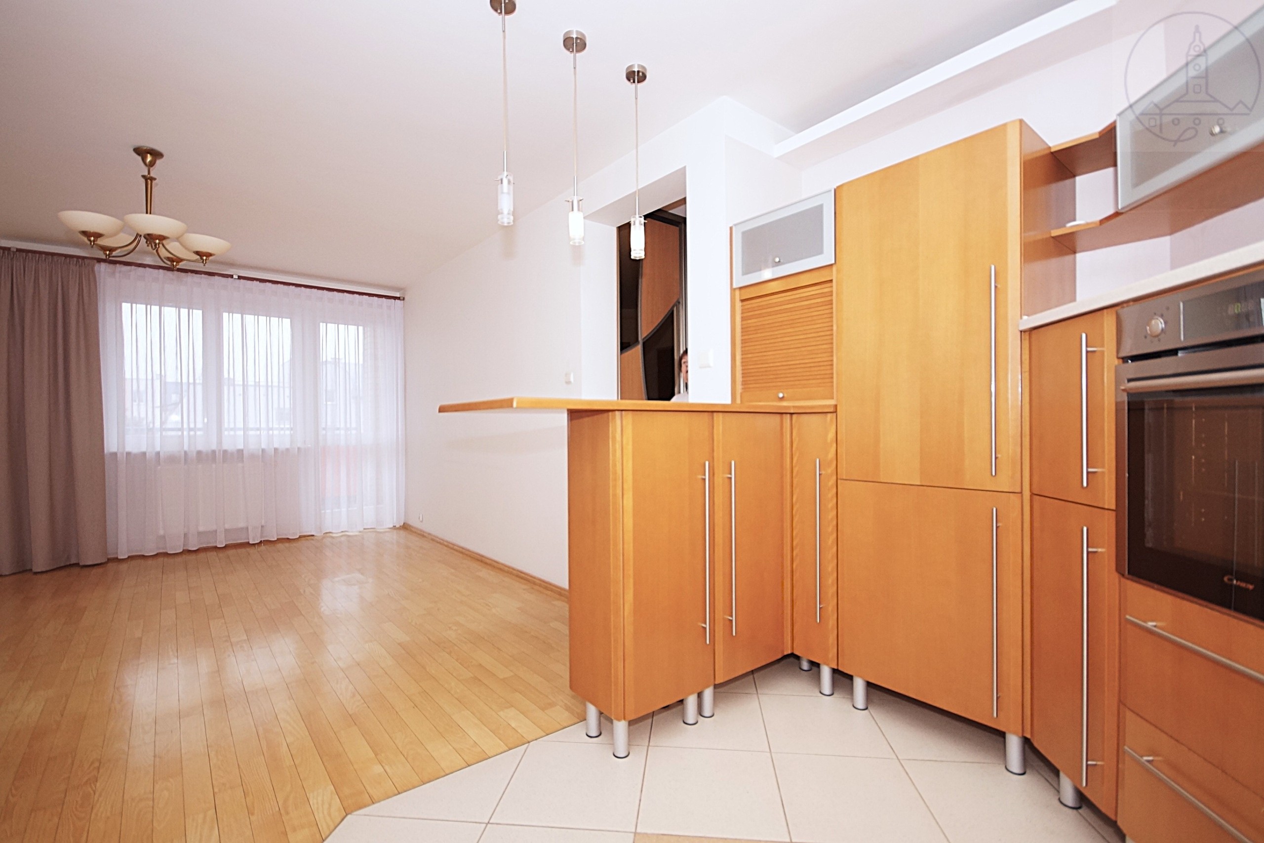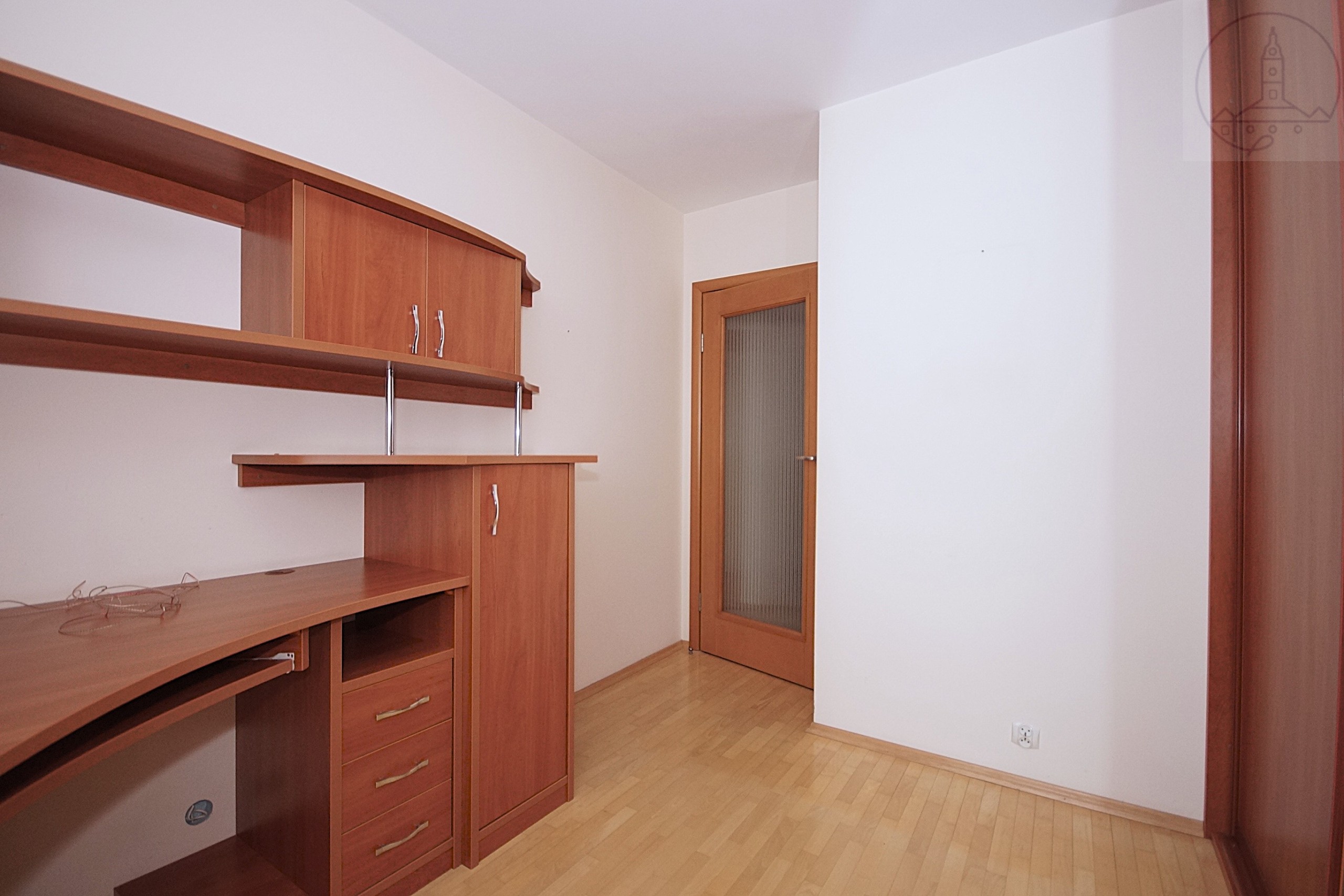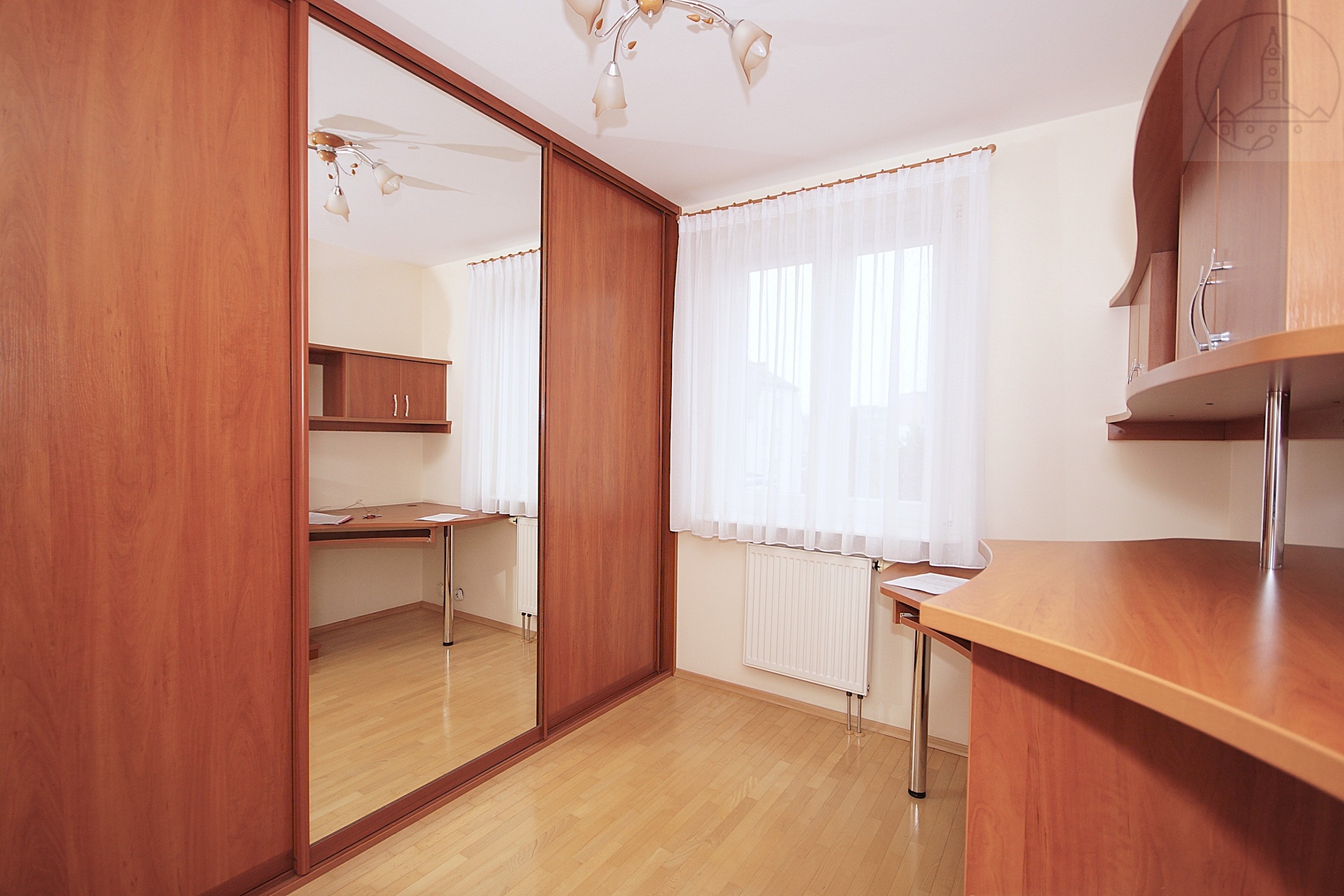 Na jednym poziome 76,6 mkw są:- przedpokój (ustawny z licznymi zabudowami stałymi)- 3 sypialnie (każda dostępna z przedpokoju)- pokój dzienny z kuchnią w aneksie (z tego pomieszczenia wyjście na balkon typu loggia o pow ok. 5 mkw)- łazienka (z oknem, wyposażona w wannę i prysznic)- osobne wc (z umywalką)