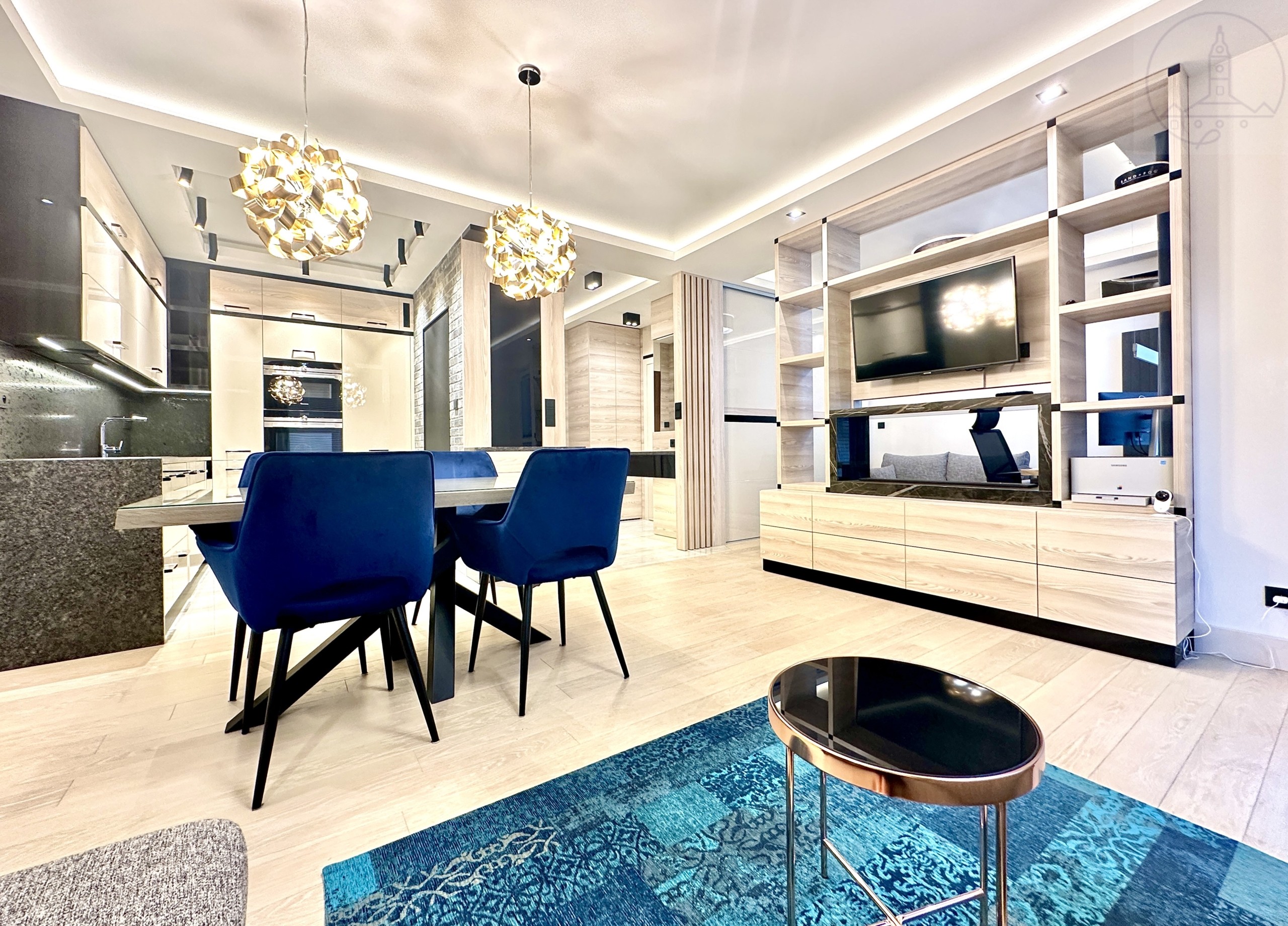 To komfortowe i gotowe do wprowadzenia mieszkanie o powierzchni 46,42mkw położone na I piętrze zaaranżowane zostało według najnowszych trendów z ciepłymi akcentami. Lokal w pełni umeblowany w liczne zabudowy, funkcjonalny, wyposażony w klimatyzację.